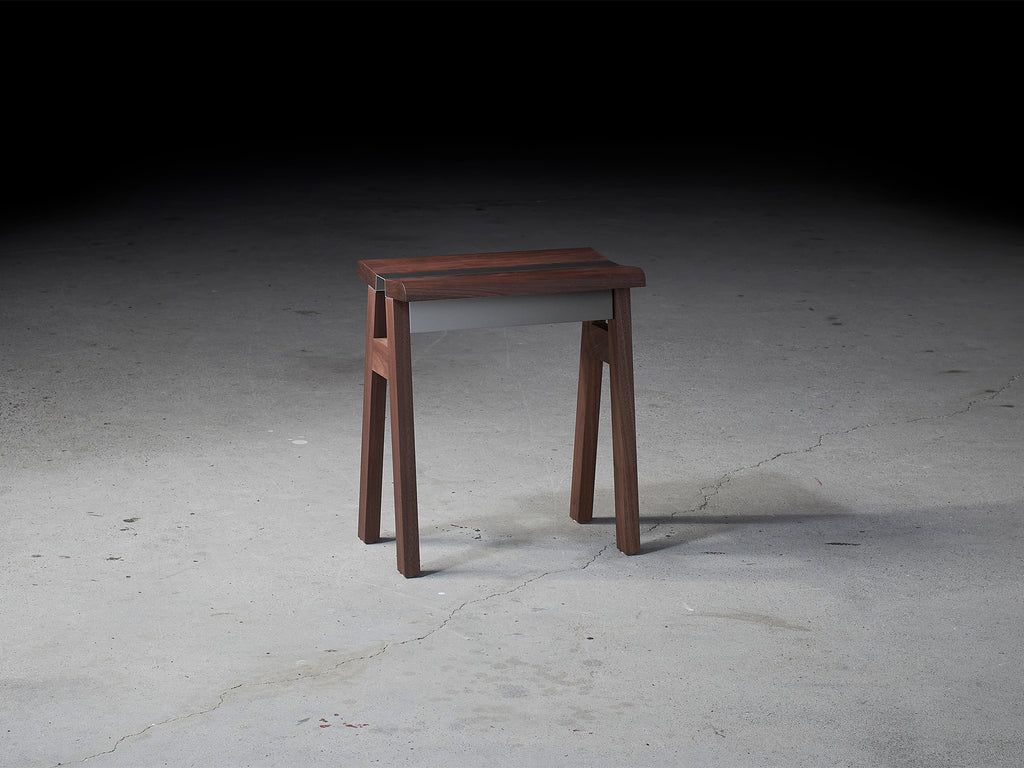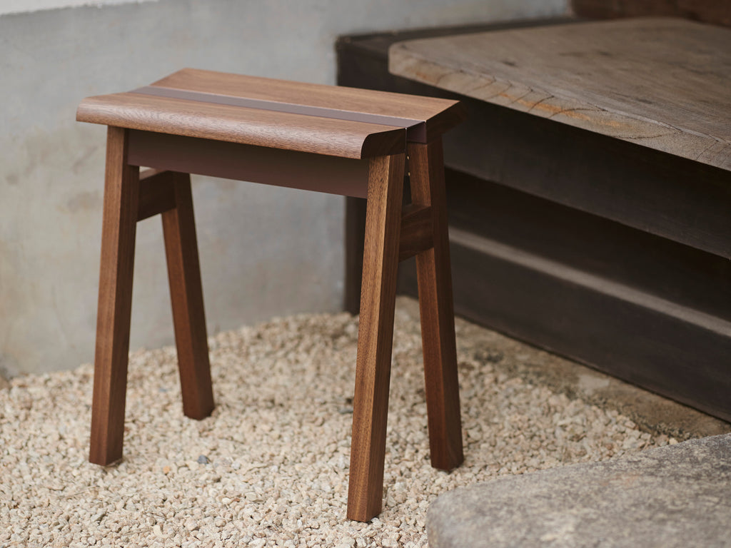 「stool」のすっきりとした佇まいは、リビングや玄関などで腰掛けるスツール本来の用途はもちろん、ソファーやベッドサイドで荷物や本を置くサイドテーブルでの使用にも最適です。異素材の組み合わせによりアクセントをもたらし、シンプルな構造ながら比類しないデザイン性を持ちます。樹種はオークとウォールナットの2種。明るい色味が美しく様々なシーンと相性の良いオーク、装飾的な木目を持ち重厚感のある素材ながら、モダンな空間を演出するウォールナット。